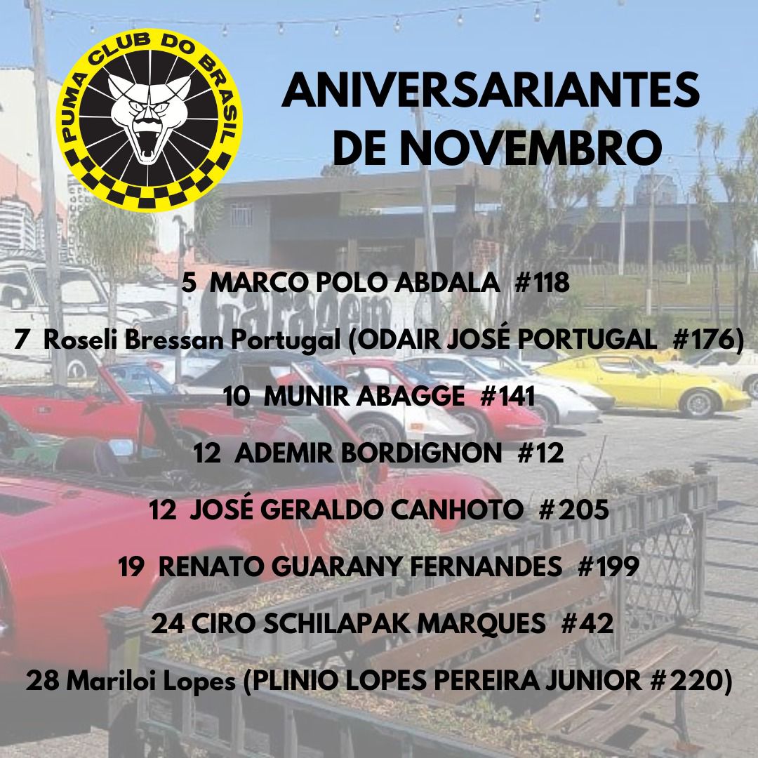 O Puma Club Do Brasil, parabeniza seu sócio pela passagem de seu aniversário no mês de NOVEMBRO.
